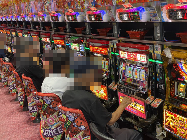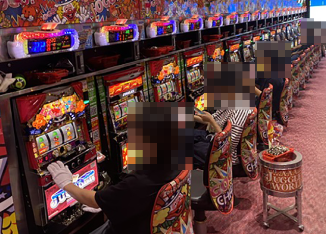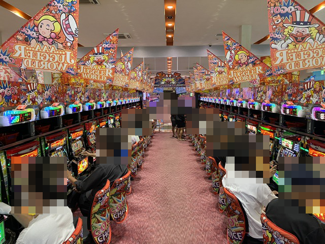 16時過ぎのパチスロでは、ジャグラーシリーズがにぎわいをみせていた。