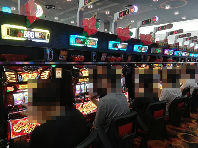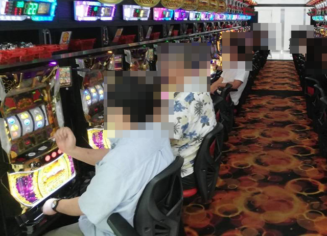 パチスロコーナーでは、9割以上が埋まっているハナハナシリーズがとくに盛況。