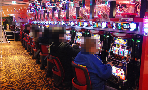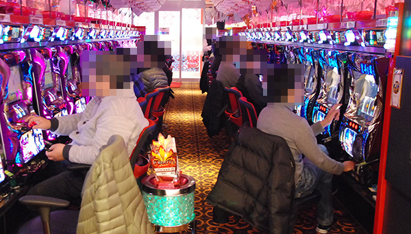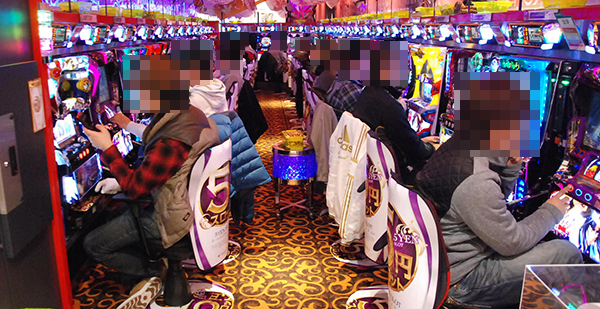 夕方頃の20円パチスロをみてみると、ジャグラーシリーズが大盛況。なかでも、「ファンキージャグラー」と「ニューアイムジャグラーEX」の盛り上がりがひときわ大きかった。