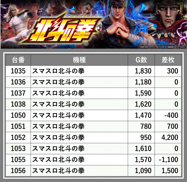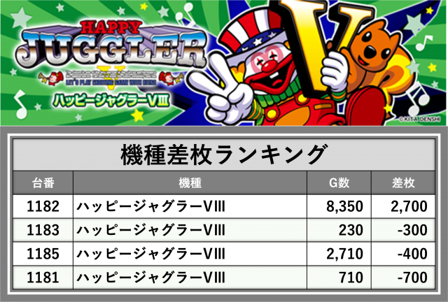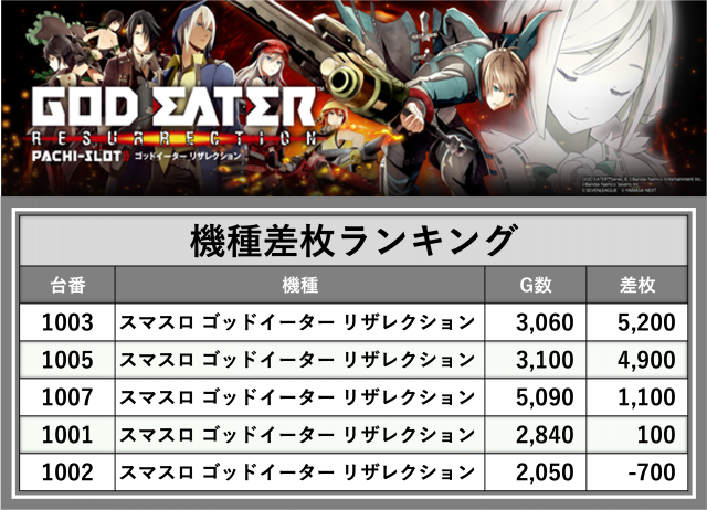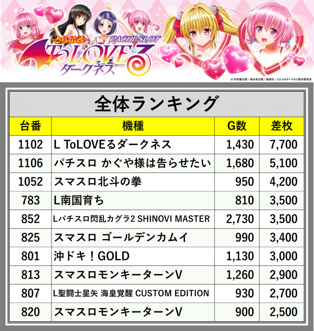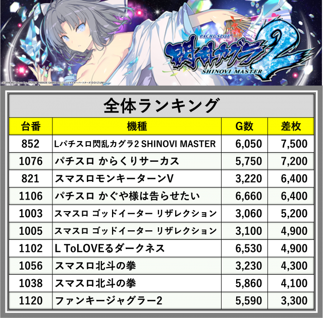 ※差枚数順に掲載しています
