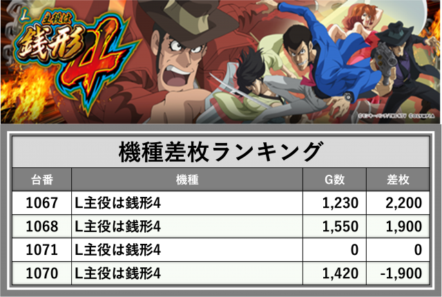 厳選された取材対象機種をはじめ、その他スロット全体から好記録が飛び出した!プレイヤーが楽しんだ1日を下記データにて振り返ってみて欲しい。