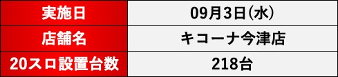 9月3日(火)キコーナ今津店にて、DMMぱちタウンの新感覚取材「スロセレ」を実施。