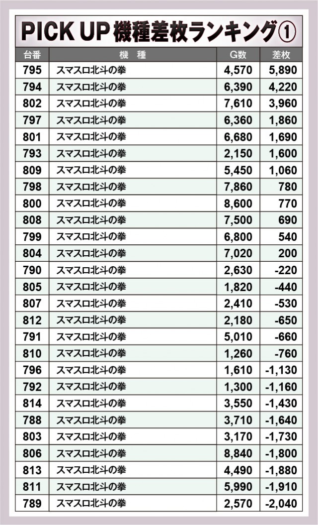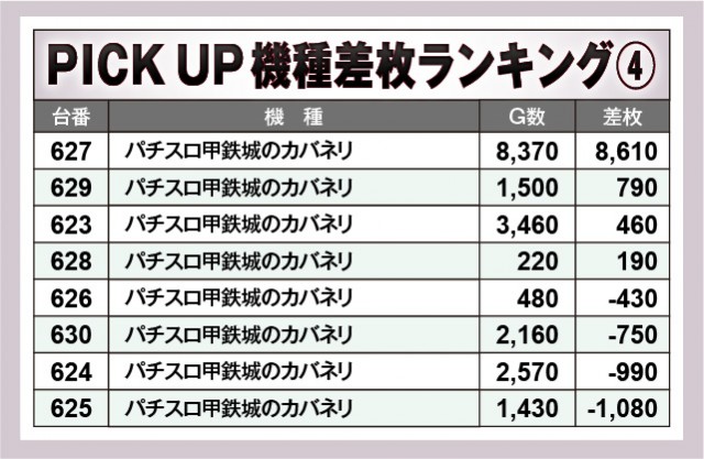 もちろん、既存のAT機たちも負けじと活躍していた。『スマスロ北斗の拳』はどの台もじっくりと打ち込まれており、4~5,000枚OVERを生み出しては、その存在をアピール。メダル機ながら8,000枚OVERを記録した『パチスロ甲鉄城のカバネリ』も見逃せず、同店が入念に準備をすすめてきたことが窺えるばかりだ。