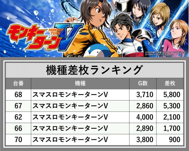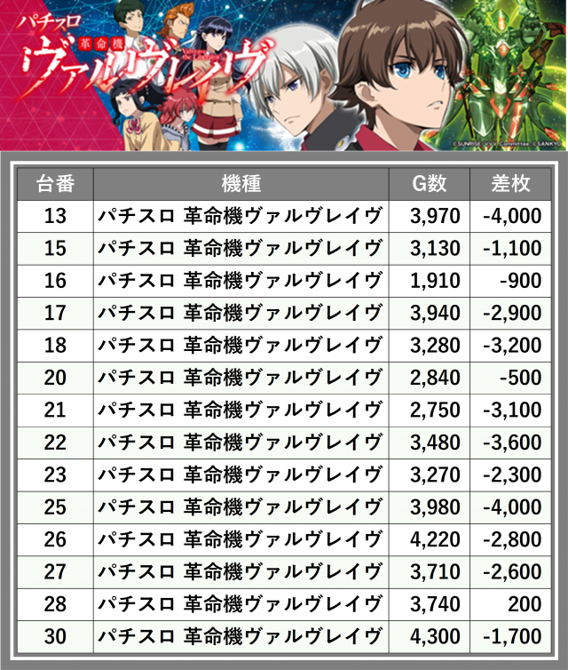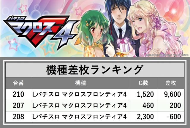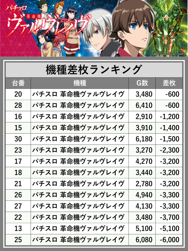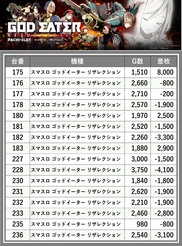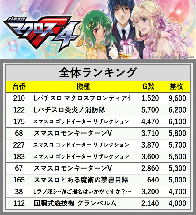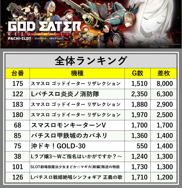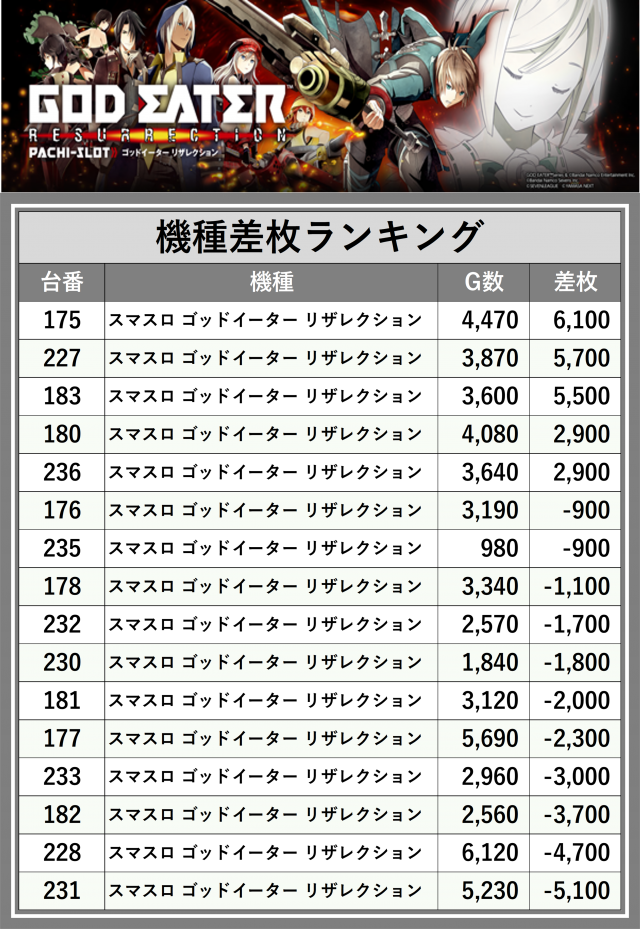 ※差枚数順に掲載しています