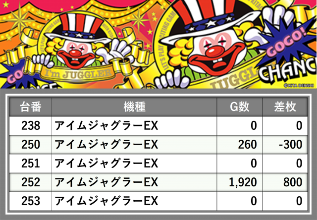 厳選された取材対象機種をはじめ、その他スロット全体から好記録が飛び出した!プレイヤーが楽しんだ1日を下記データにて振り返ってみて欲しい。