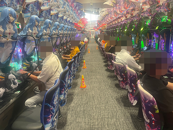 14時ごろの4円パチンコでは「新世紀エヴァンゲリオン〜未来への咆哮〜」や「ぱちんこ シン・エヴァンゲリオン Type レイ」、「e Re:ゼロから始める異世界生活 season2」が盛況で、機種のポテンシャルをフルに活かすプレイヤーを複数確認している。