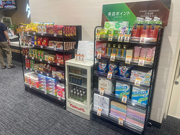 景品コーナーには日用品・お菓子・ドリンク類が豊富に用意されており、おみやげ選びも存分に楽しめることだろう。