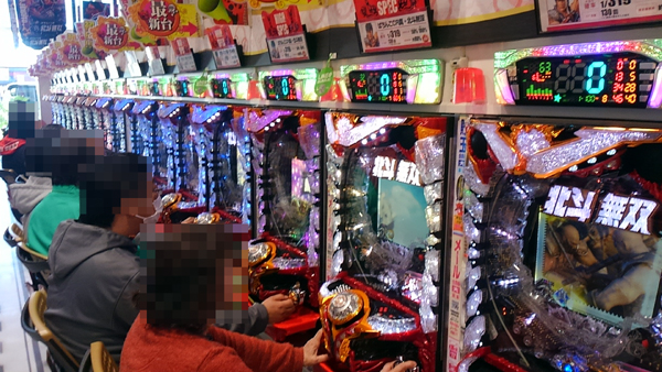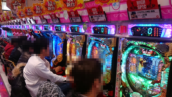 ほかにも、新台の「CR戦国乙女~花~」「CRぱちんこ押忍!番長」も人気で、午後になってもフル稼働となっていた。