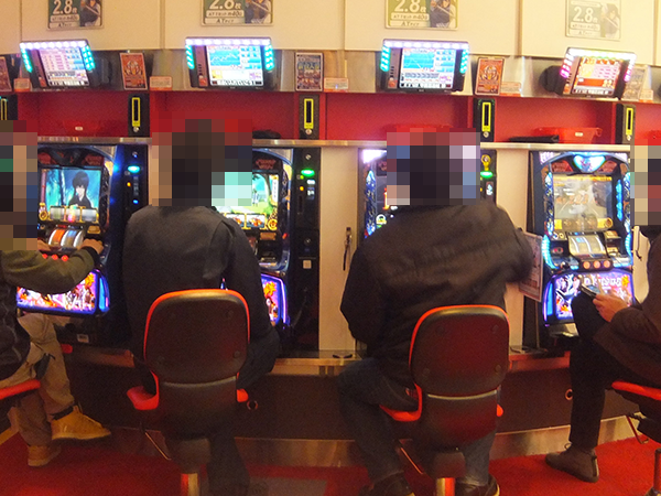 14時頃の20円パチスロでは、「バジリスク~甲賀忍法帖~絆」が盛況。機種の性能を最大限まで引き出しているといったプレイヤーの姿があり、大きな活気も感じられた。
