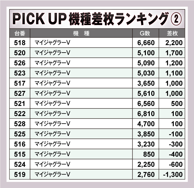 ※差枚数順に掲載しています。