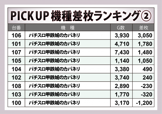 その他『沖ドキ!GOLD』では+5,600枚超&+4,900枚弱が1台ずつ、『パチスロ甲鉄城のカバネリ』には+3,100枚弱と、25パイマシンにも大きな報酬が潜んでいた。