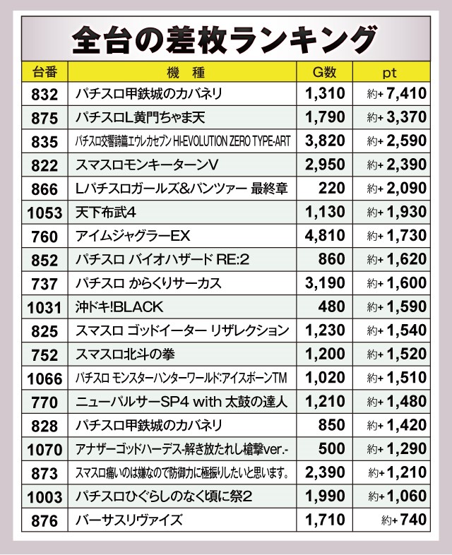 さらに『パチスロL黄門ちゃま天』も3千ptを超えるなど高ptを獲得した。