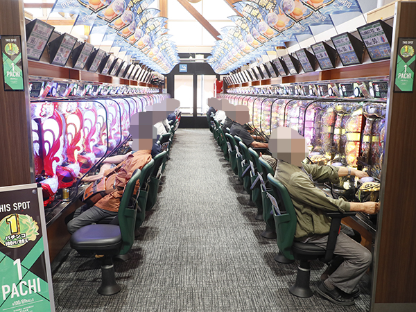 店内では貸し玉料金を問わず様々な機種で、心ゆくまで楽しむプレイヤーの姿が見られた。