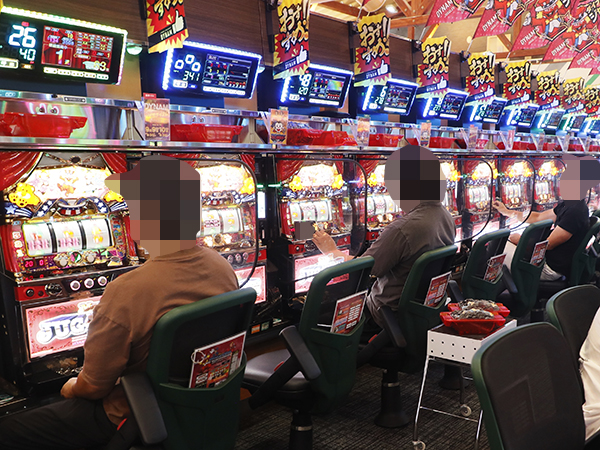 「マイジャグラーⅤ」や「パチスロ甲鉄城のカバネリ」、「パチスロ かぐや様は告らせたい」も大盛り上がり。機種の醍醐味を味わうプレイヤーを複数目にしている。