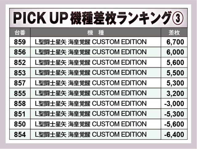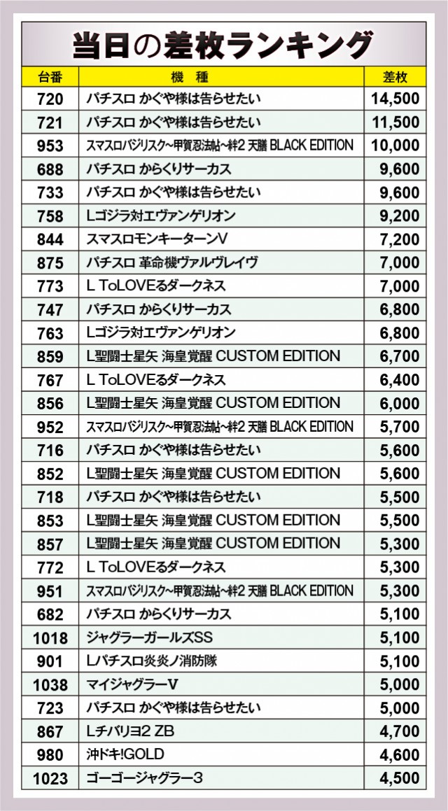 ※差枚数順に掲載しています。