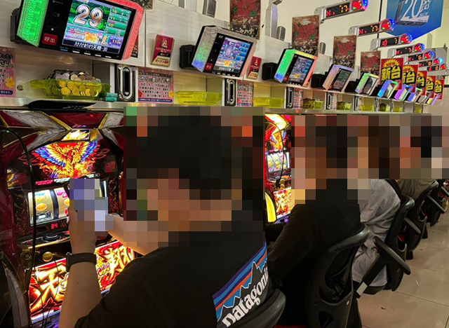 2名のプレイヤーが2箱以上の持ち玉を使い、遊技をおこなっていた。