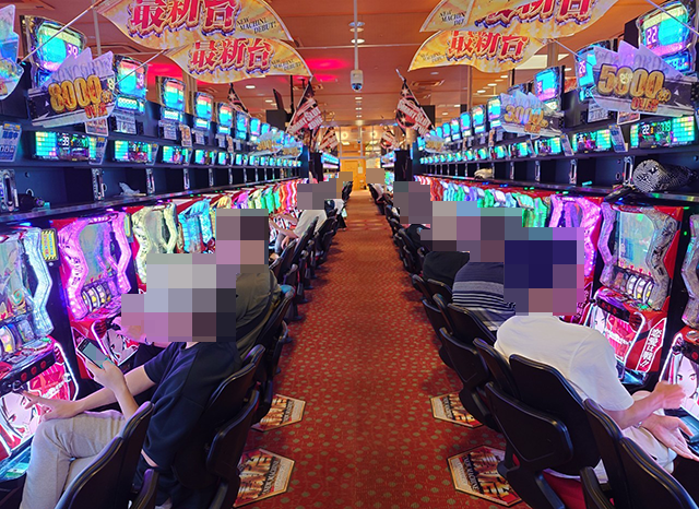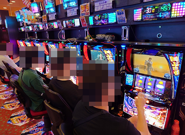 全体的に稼働率が高く、夕方頃もたくさんのプレイヤーが遊技を楽しんでいた。