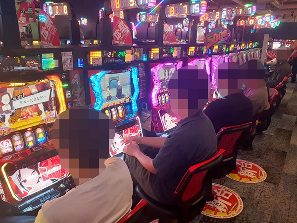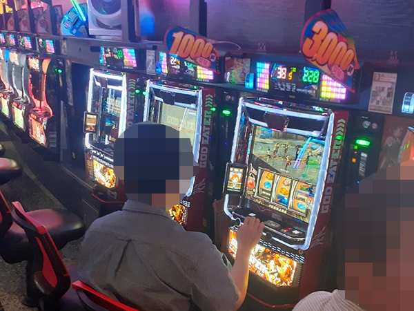 「スマスロ ゴッドイーター リザレクション」や「アナザーゴッドハーデス-解き放たれし槍撃ver.-」では、機種の魅力を堪能するプレイヤーを確認。シマ中に明るい雰囲気が広がっていた。