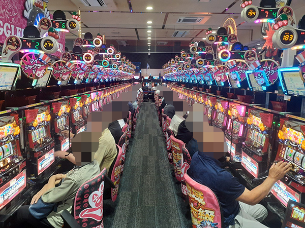 5円パチスロの稼働も高い。楽しそうにレバーを叩くプレイヤーの姿を複数目撃している。