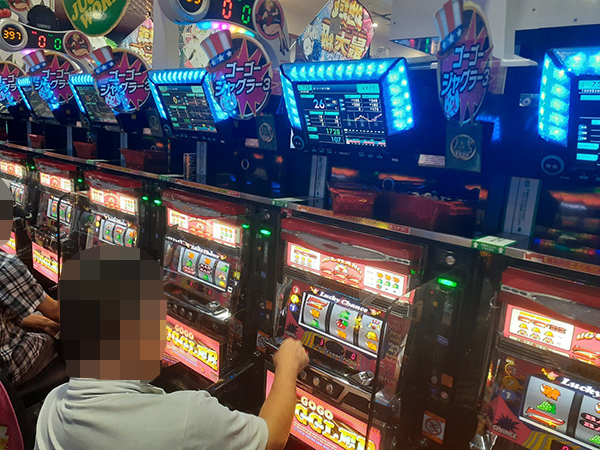 1000円/46枚パチスロをチェックすると、「マイジャグラーⅤ」や「ゴーゴージャグラー3」などのジャグラシリーズで好調なプレイヤーを確認。納得の表情がそこかしこで見られた。