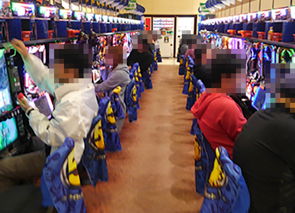 ホール内の様子をみると、パチンコとパチスロの各コーナーにプレイヤーの笑顔が広がっていた。