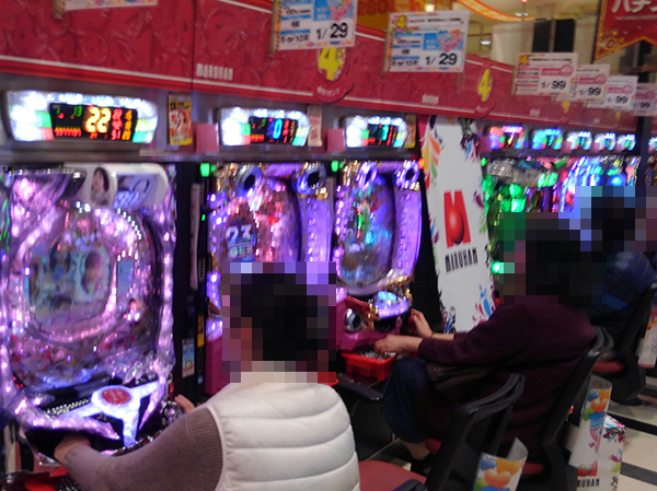 「ちょいパチ冬のソナタ39」や「ちょいパチ ヱヴァンゲリヲン10」など、さまざまな機種が支持を受けており、じっくりと遊技を楽しんでいるといった光景が印象的であった。