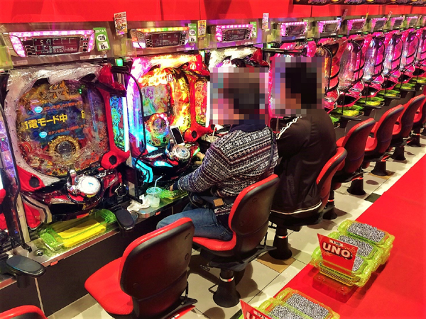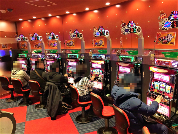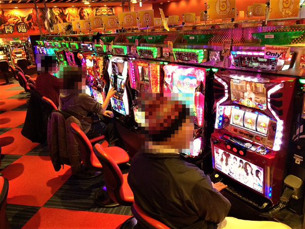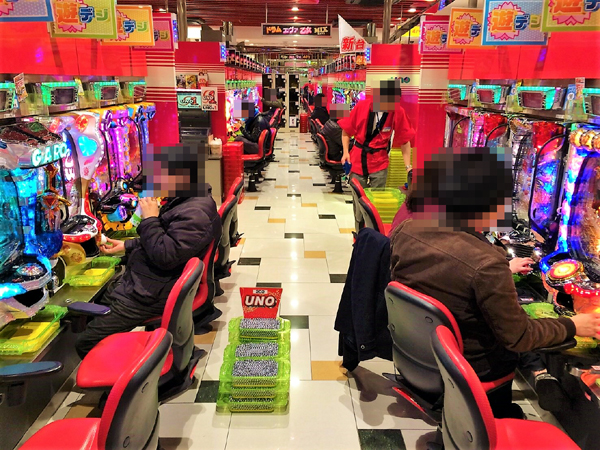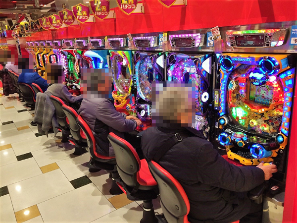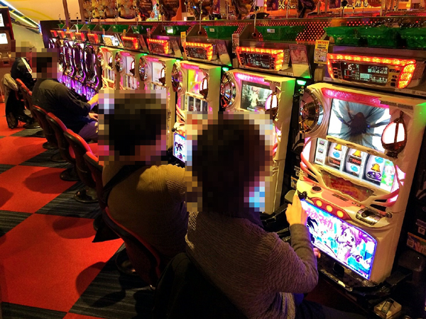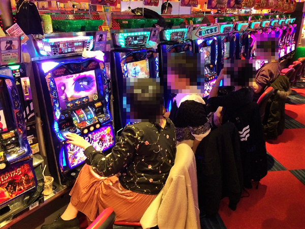 16時頃の4円パチンコでは、新台の「CR戦国乙女〜花〜」が人気となっていた。プレイヤーが隣同士で楽しそうに会話しながら遊技する姿が見受けられた。