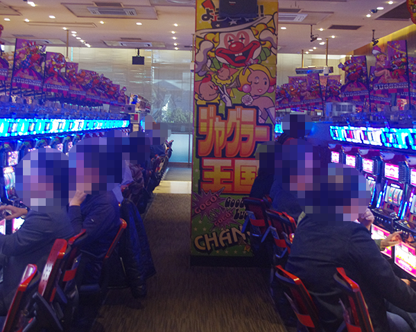 15時頃のパチスロをみると、「パチスロ モンスターハンター~狂竜戦線~」と「押忍!サラリーマン番長」が大盛況。ほぼ満席といった状況だけでなく、楽しそうな光景が印象に残っている。