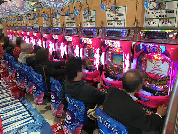 また、「ちょいパチ」コーナーが大きく展開されており、女性プレイヤーや年配層中心に高い稼働率を維持していた。