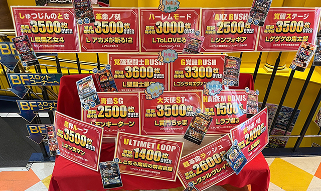続いたのは『パチスロ 緋弾のアリアⅡ』255番台と『スマスロバジリスク~甲賀忍法帖~絆2 天膳 BLACK EDITION』213番台。それぞれ+2,390枚、+2,050枚という結果を残している。