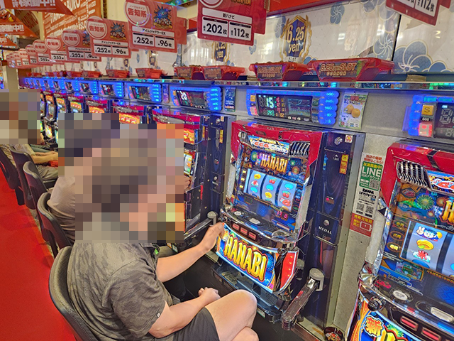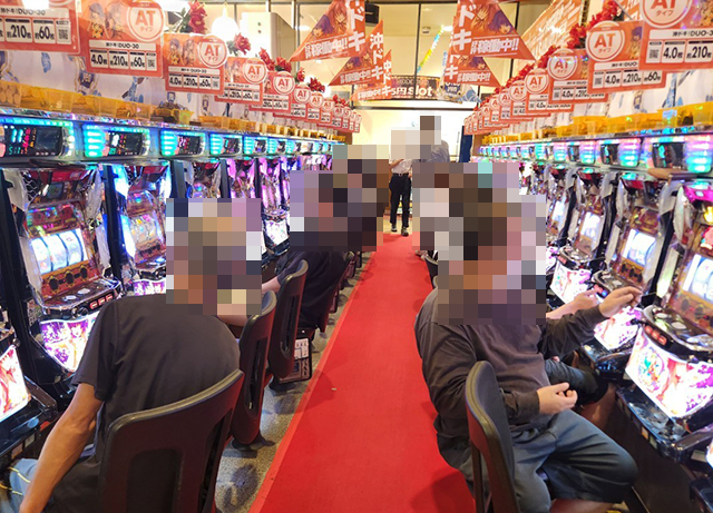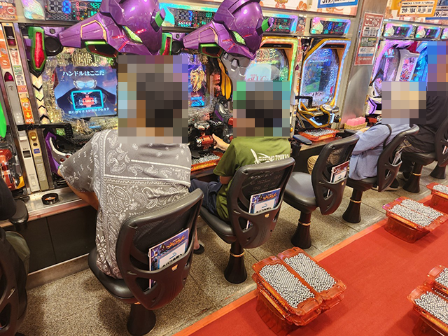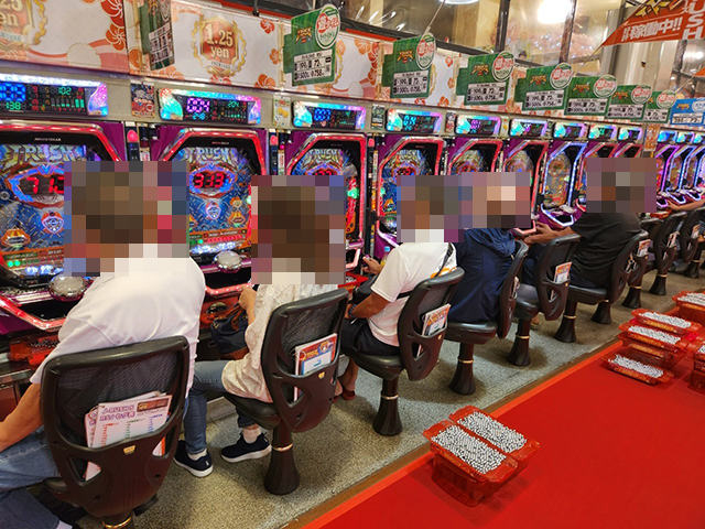 取材時は5名が座っており、1箱以上や3箱以上、10箱以上の持ち玉で遊技をおこなっていた。