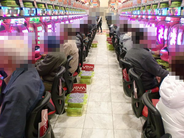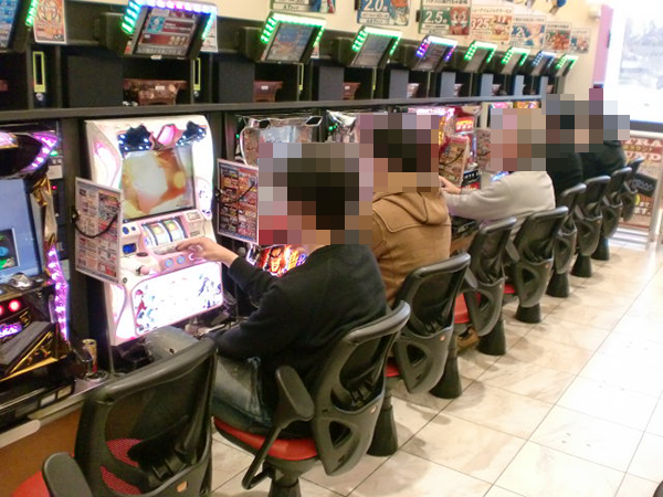 14時頃の20円パチスロでは、「バジリスク~甲賀忍法帖~絆」や「ニューアイムジャグラーEX」などが大盛り上がり。機種の性能を引き出しているといったプレイヤーがみられ、満足度も高そうであった。