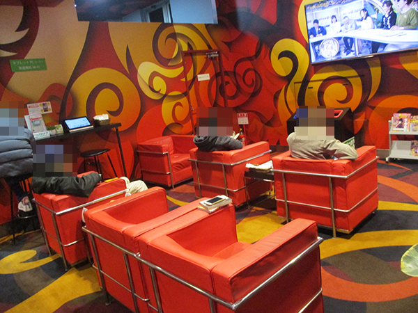 レストスペースにはテレビや漫画、無料でインターネットが使えるコーナーも設置。くつろいでいる様子のプレイヤーも多く、この場所が支持されていることもうかがえた。