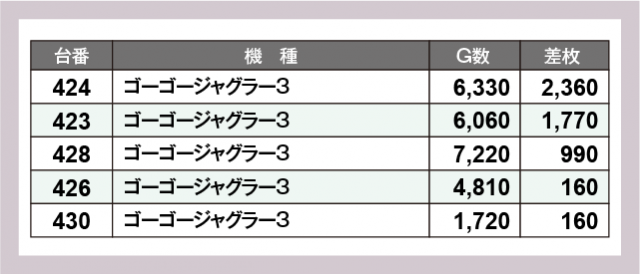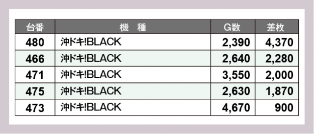 ※差枚数順に掲載しています