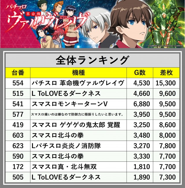 厳選された取材対象機種をはじめ、その他スロット全体から好記録が飛び出した!プレイヤーが楽しんだ1日を下記データにて振り返ってみて欲しい。