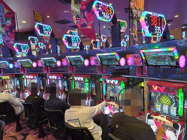 14時ごろの1000円/46枚パチスロでは「パチスロ 革命機ヴァルヴレイヴ」や「スマスロ ゴッドイーター リザレクション」が盛況で、機種のポテンシャルをフルに活かすプレイヤーを複数確認している。