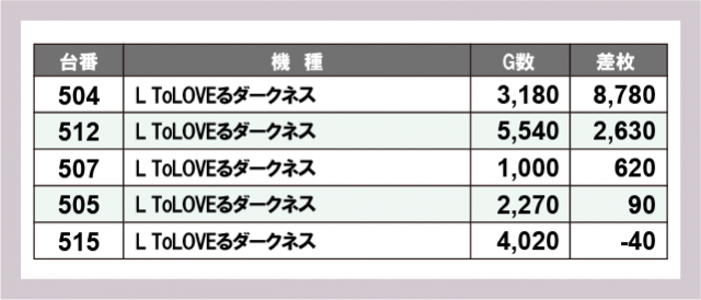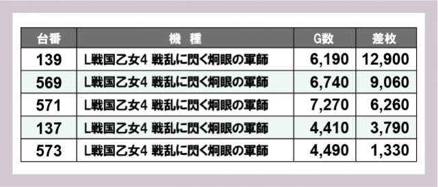 ※差枚数順に掲載しています