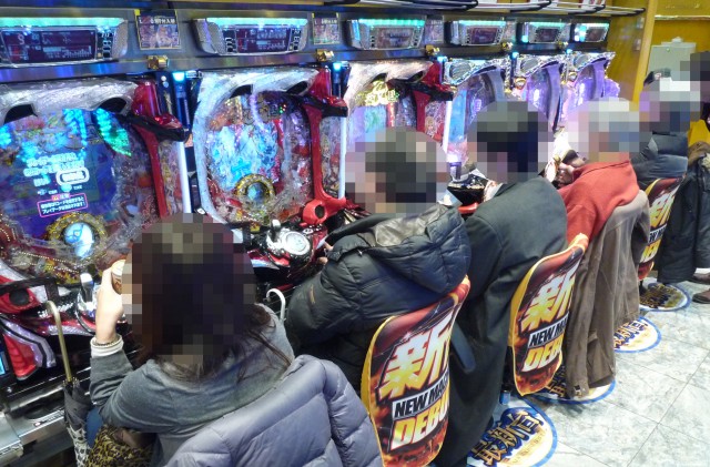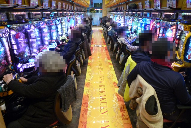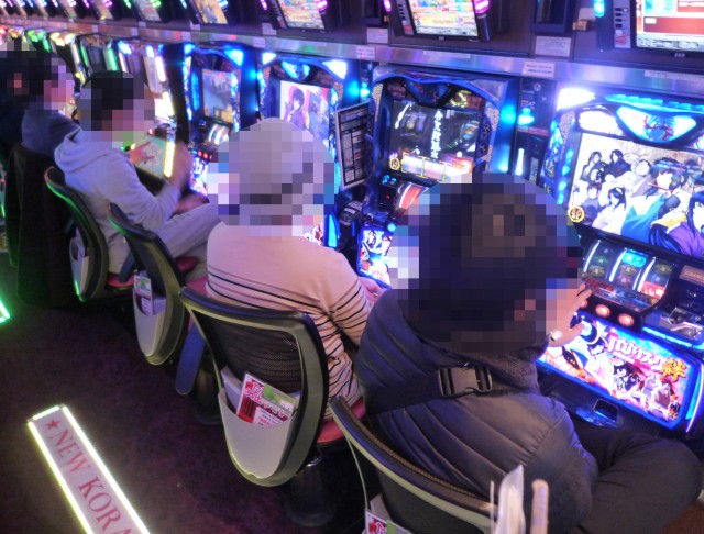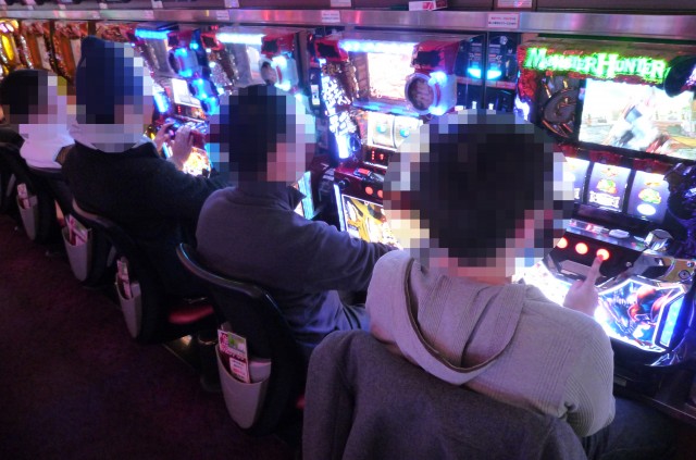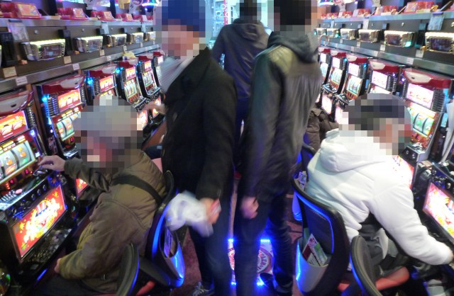 ズラリと並んだジャグラーシリーズの中でも、特に「ニューアイムジャグラーEX」にあふれるほどのプレイヤーが集まり人気だった。いたる所でまぶしい光を放ち、心から遊技を堪能していることをうかがえた。