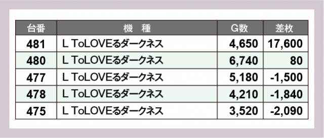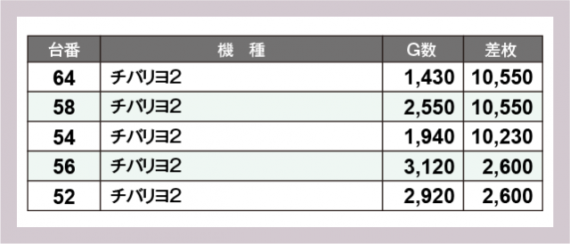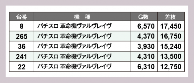※差枚数順に掲載しています