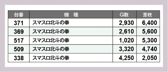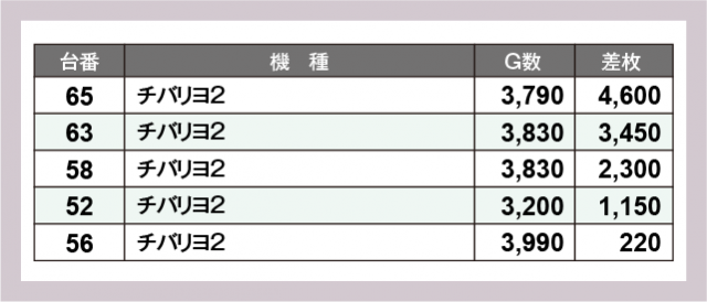 ※差枚数順に掲載しています