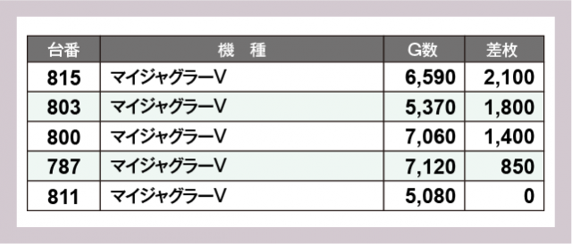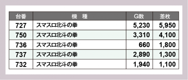 ※差枚数順に掲載しています