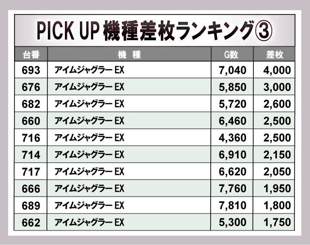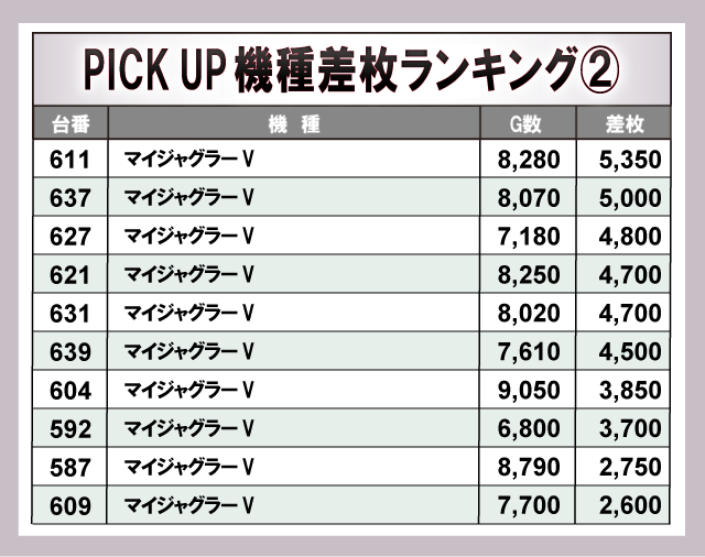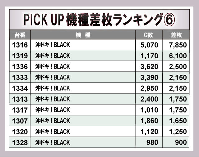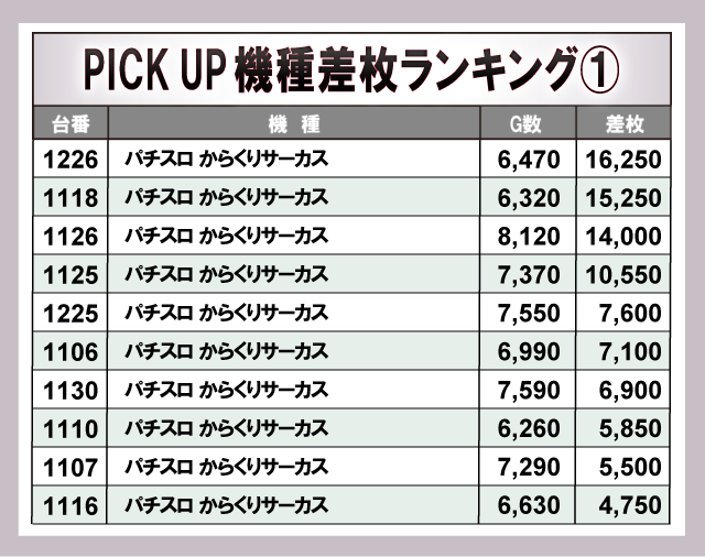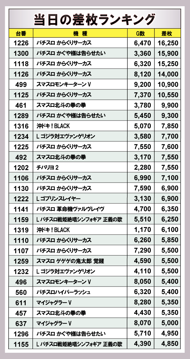 ※差枚数順に掲載しています。