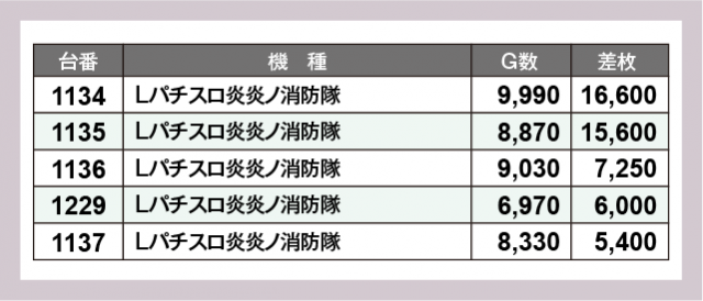 ※差枚数順に掲載しています
