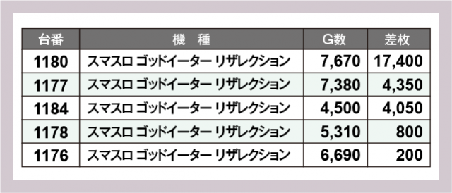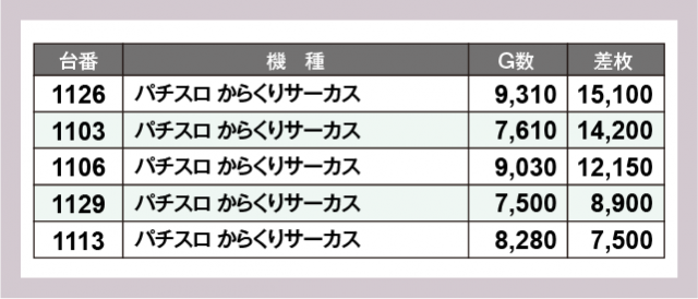 ※差枚数順に掲載しています