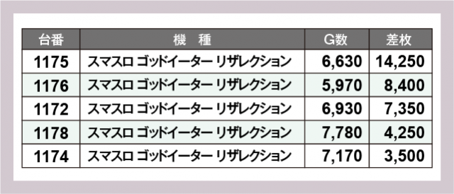 ※差枚数順に掲載しています