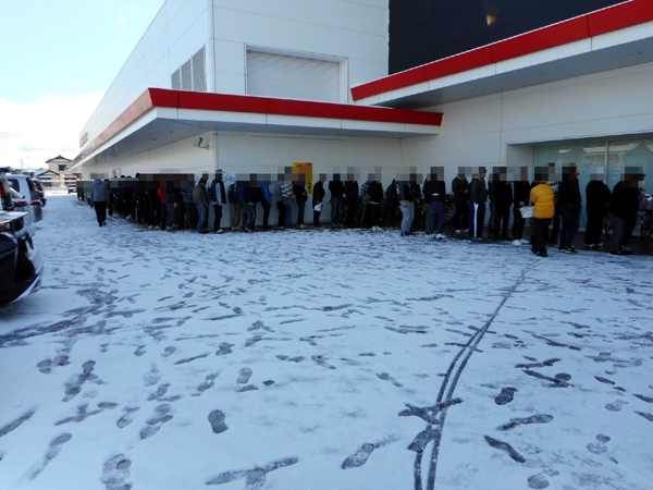雪が積もるほどの寒さのなか、朝イチから200名を超えるプレイヤーが集結。同店への期待の高さを感じることができた。