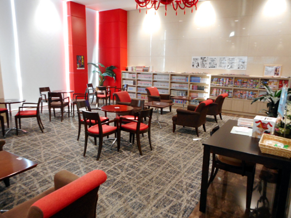マンガや雑誌を多数揃えたレストスペース、地元の名物を揃えた賞品コーナーなど、遊技面以外の部分でもこだわりが感じられた。