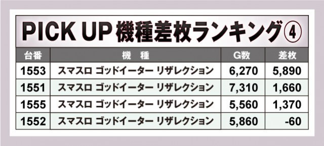 どの台がどれくらいの差枚数だったのか確認しておこう。