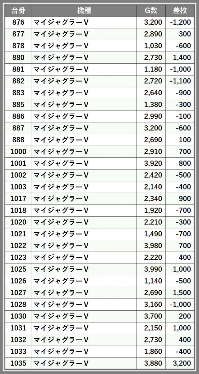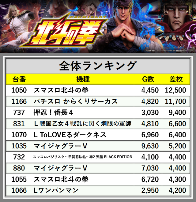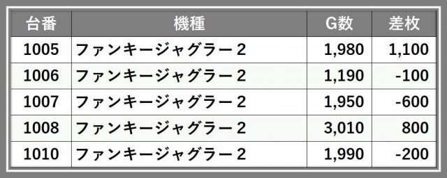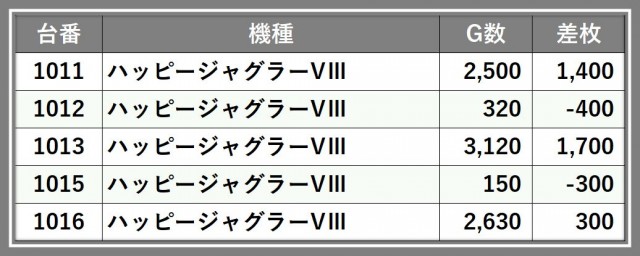厳選された取材対象機種をはじめ、その他スロット全体から好記録が飛び出した!プレイヤーが楽しんだ1日を下記データにて振り返ってみて欲しい。
