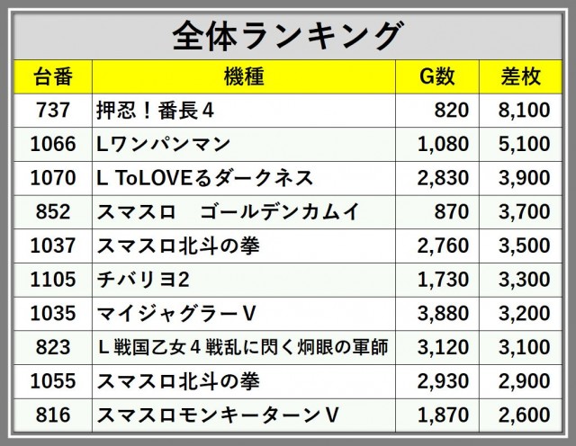 ※記事内の差枚表記はぱちタウン独自調査に基づくものです。ご了承ください。